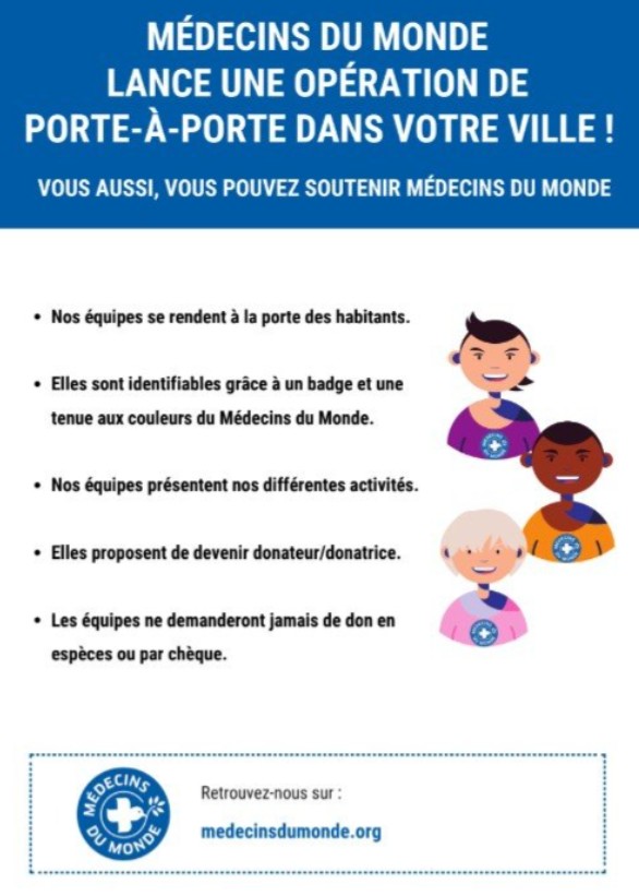 Opération porte-à-porte Médecins du monde à Gattières du 05 au 09 janvier 2026