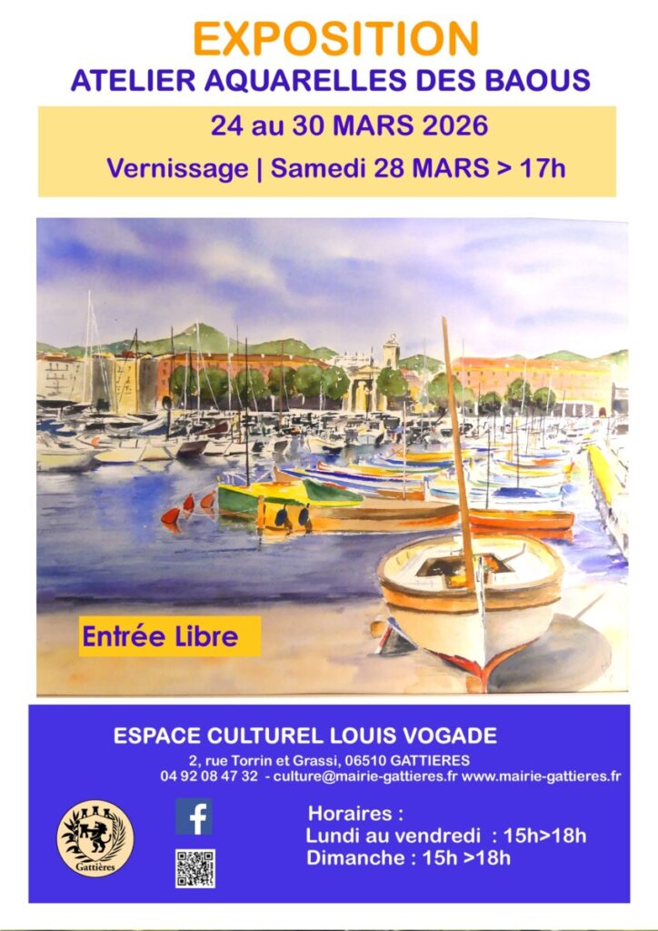 Exposition de l’Atelier Aquarelles des Baous, du 24 au 30 mars, espace culturel Louis Vogade