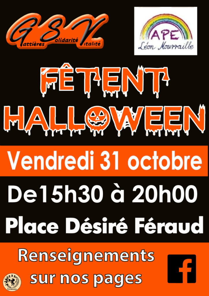 Halloween organisée par GSV et l’APE LM, vendredi 31 octobre, de 15h30 à 20h00, place Désiré Féraud