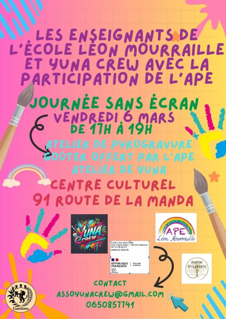 Journée sans écran, vendredi 6 mars, de 17h à 19h – Atelier de pyrogravure, suivi d’un goûter offert par l’APE LM – Centre culturel Yuna Crew
