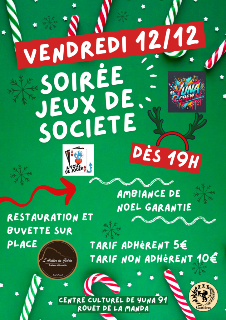 Soirée jeux de société Vendredi 12 décembre dès 19h – Centre culturel Yuna Crew – Restauration et buvette sur place.